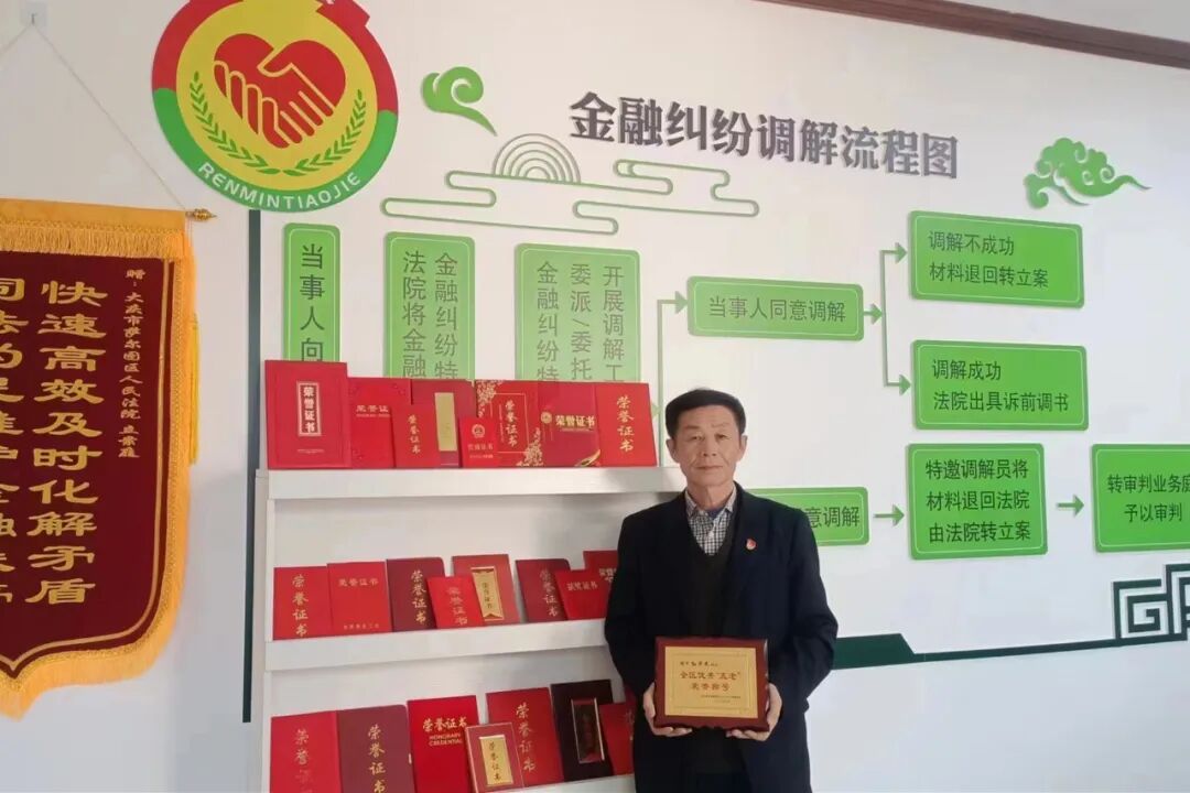 他虽不是法官,却有着同法官一样的为民情怀,不怕麻烦、不辞辛苦地做当事人之间的调解工作。他是“调解高手”,不但能让“案结事了”,更让“案结事好”。曾成功调处了多起让法官感到“头疼”的具有一定社会影响的案件,收到了良好的社会效果和法律效果,既实实在在地化解了社会纠纷,又切实分流了法院审判压力,赢得了辖区百姓与法院的“双重信任”。他现已成为萨尔图区法院诉前调解工作的领军人,成为多元化解决社会纠纷工作中令人众口称赞的不可或缺的一员。