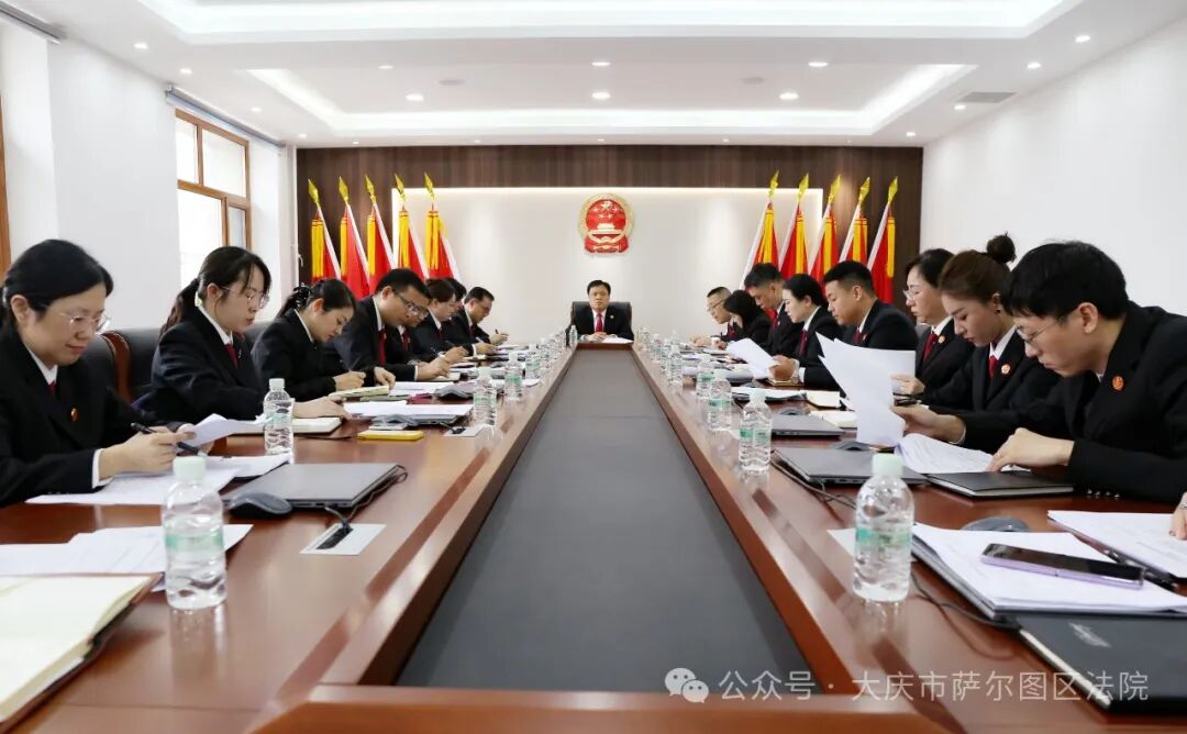 4月16日,大庆市萨尔图区人民法院召开党组(扩大)会议,深入贯彻落实全市法院司法审判数据分析研判会商暨重点工作推进会议和全市法院研究室条线重点工作推进会议要求,院领导班子成员及各部门负责人参加会议。 全市法院司法审判数据分析研判会商暨重点工作推进会议和全市法院研究室条线重点工作推进会议立足新时代人民法院工作高质量发展大局,为当前和今后一段时期法院各项工作指明了方向、明确了重点,也为推动法院高质量发展提供了有力指导。全体干警要统一思想、凝聚共识,自觉对标上级法院部署要求,正视当前工作中存在的短板和不足,进一步增强责任感和紧迫感,迅速行动、主动作为,推动各项工作再上新台阶。